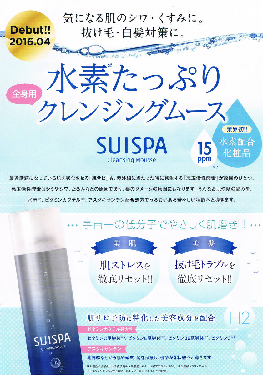 ★業界初!!!水素配合化粧品15ppm